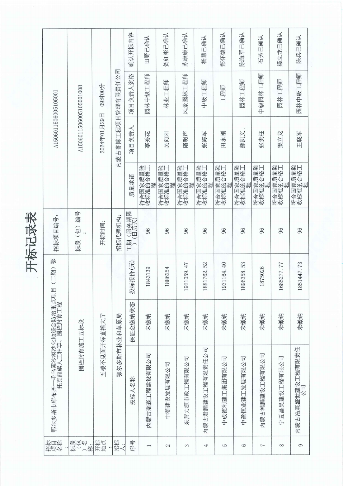 鄂尔多斯市库布齐—毛乌素沙漠沙化地综合防治重点项目(二期)鄂托克前旗人工种草、围栏封育工程围栏封育施工五标段中标候选人公示 | |||||