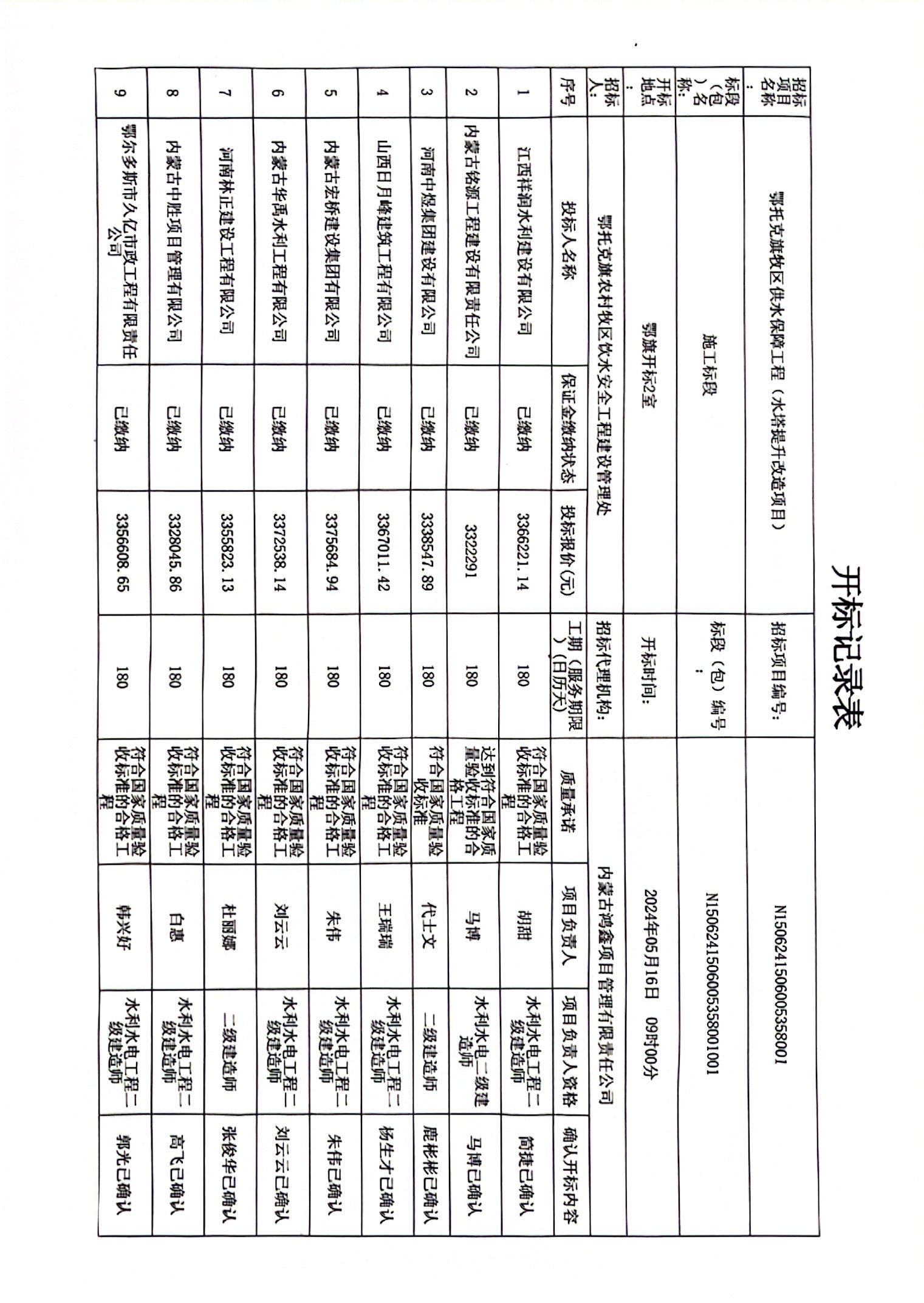 鄂托克旗牧区供水保障工程(水塔提升改造项目)施工标段中标候选人公示 | |||||